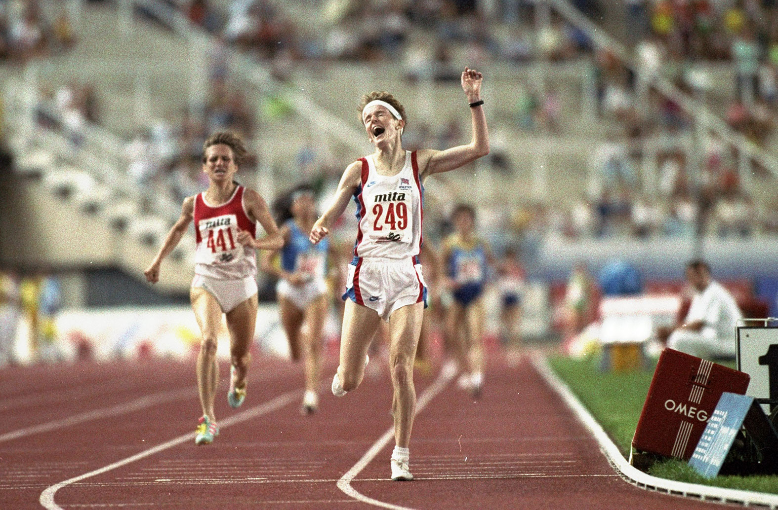 She achieved the same treble at the European Championships, claiming bronze, silver and gold medals in both indoor and outdoor 3,000m events between 1986 and 1990. She also clinched 3,000m gold at the 1993 World Indoor Championships, and twice at the World Cup, in Barcelona (1989) and London (1994).